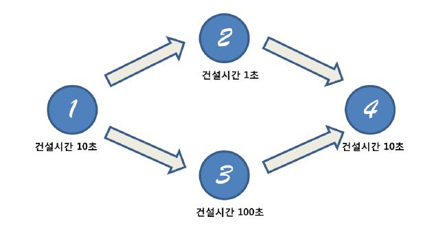 - 잔여 시간이 0인 건물은 완성된 건물이고, 이 건물이 완료되어 시작할 수 있는 모든 건물의 건설을 시작한다.